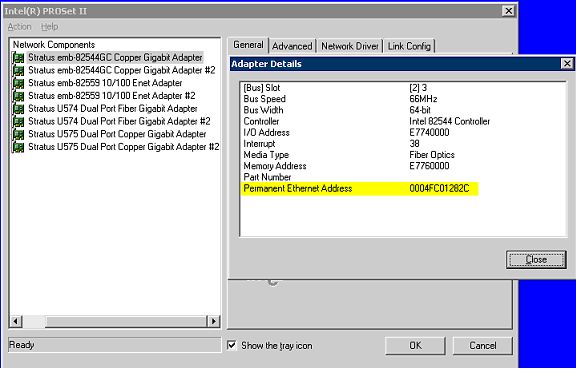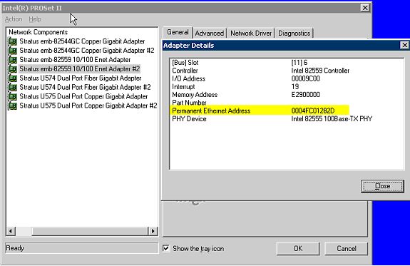 You can see this with Intel PROSet (figure 2). The 00-04-FC OUI is registered to Stratus.